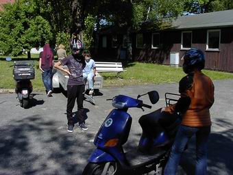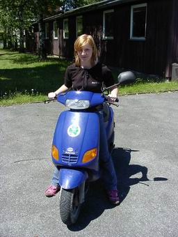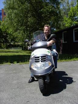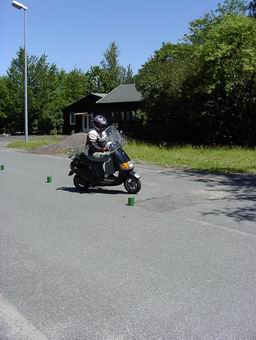 Nach kurzer Einweisung ( Aufbocken und Anlassen am Roller )